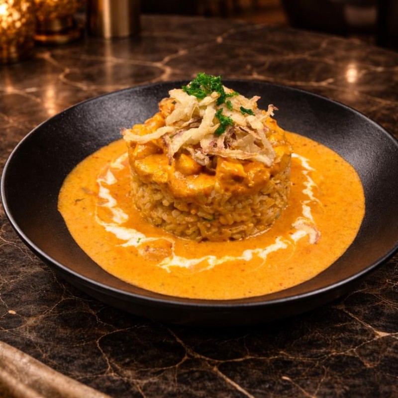 (520 سعرة حرارية)الأرز الإيطالي مع الدجاج وصلصة بيس الخاصة الوردية