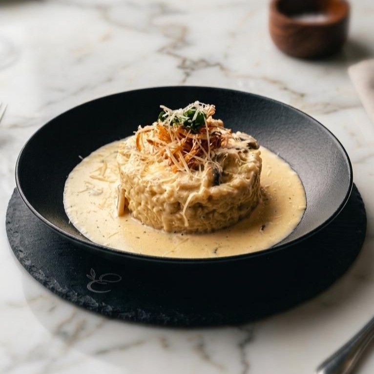 روزيتو الماشروم بصوص الفطر الكريمية مع جبنة الموزريلا و البارميزان